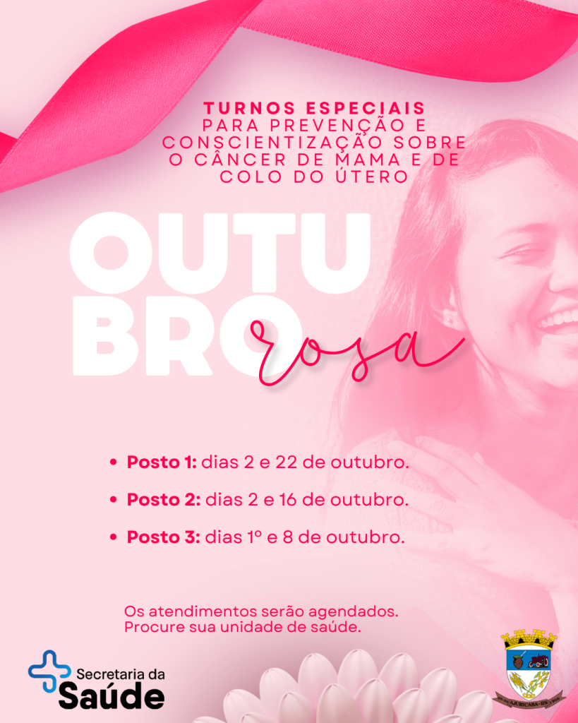 A partir do mês de outubro, os turnos estendidos das Unidades de Saúde serão encerrados, dando início a uma programação especial dedicada ao Outubro Rosa, mês de prevenção e conscientização sobre o câncer de mama e de colo do útero.