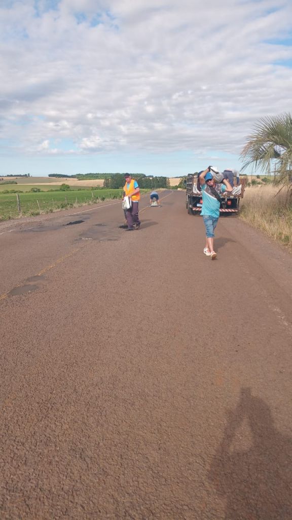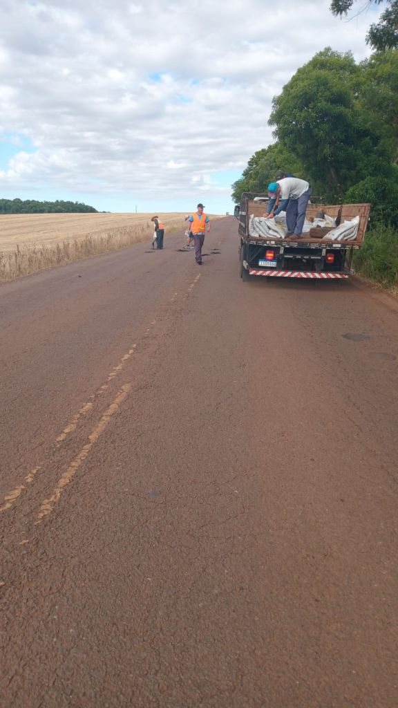 Após a solicitação do prefeito ao DAER, foram enviadas 100 sacas de massa asfáltica para a operação tapa-buracos, o que ainda será insuficiente para a execução dos pontos mais críticos do trecho. Por isso, o prefeito solicitou mais material para a conclusão da manutenção provisória.