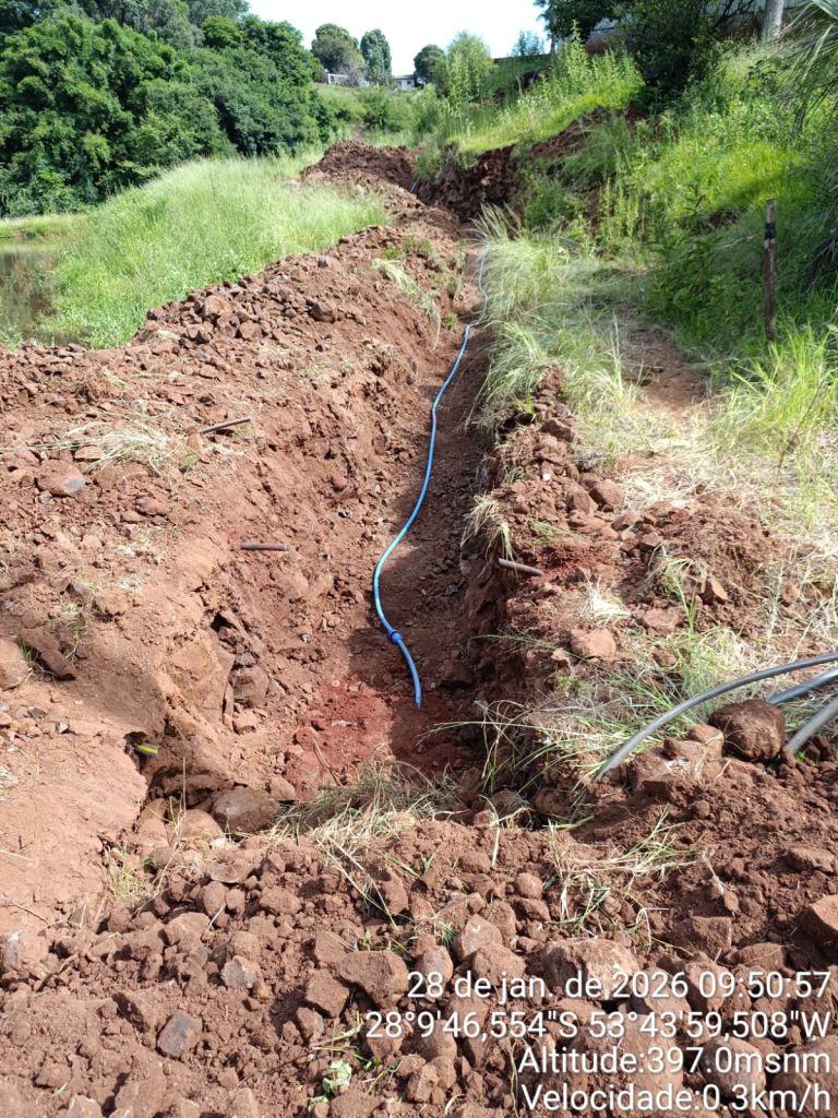 Para viabilizar as melhorias, foram adquiridas mangueiras com recursos da Defesa Civil, possibilitando, até o momento, a execução de aproximadamente 3.200 metros de novas ligações de água, beneficiando produtores que até então não contavam com abastecimento encanado, bem como com aqueles que enfrentavam dificuldades devido à antiguidade das ligações existentes na rede.