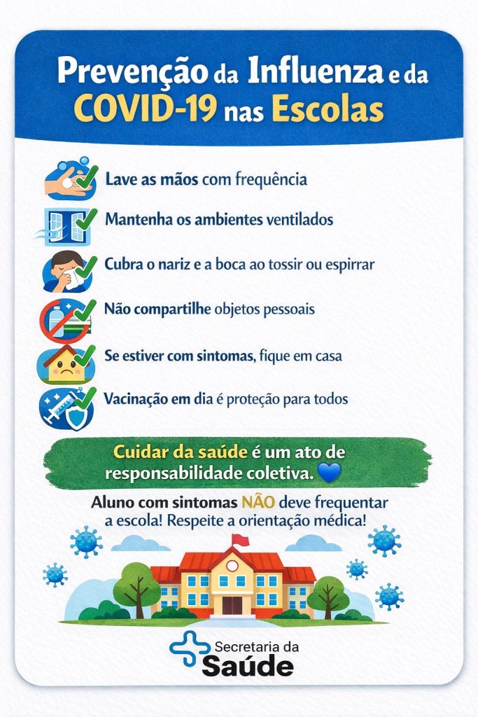 A Secretaria de Saúde destaca que a colaboração de toda a comunidade é fundamental para frear a disseminação desses vírus. Pequenas atitudes no dia a dia fazem grande diferença para proteger a saúde de todos, especialmente crianças, idosos e pessoas com comorbidades.