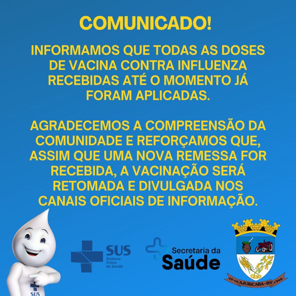 De acordo com a Secretaria Municipal de Saúde, todas as doses recebidas pelo Município foram aplicadas durante a mobilização. Assim que um novo lote de vacinas for encaminhado, a comunidade será informada por meio dos canais oficiais de comunicação do Município.