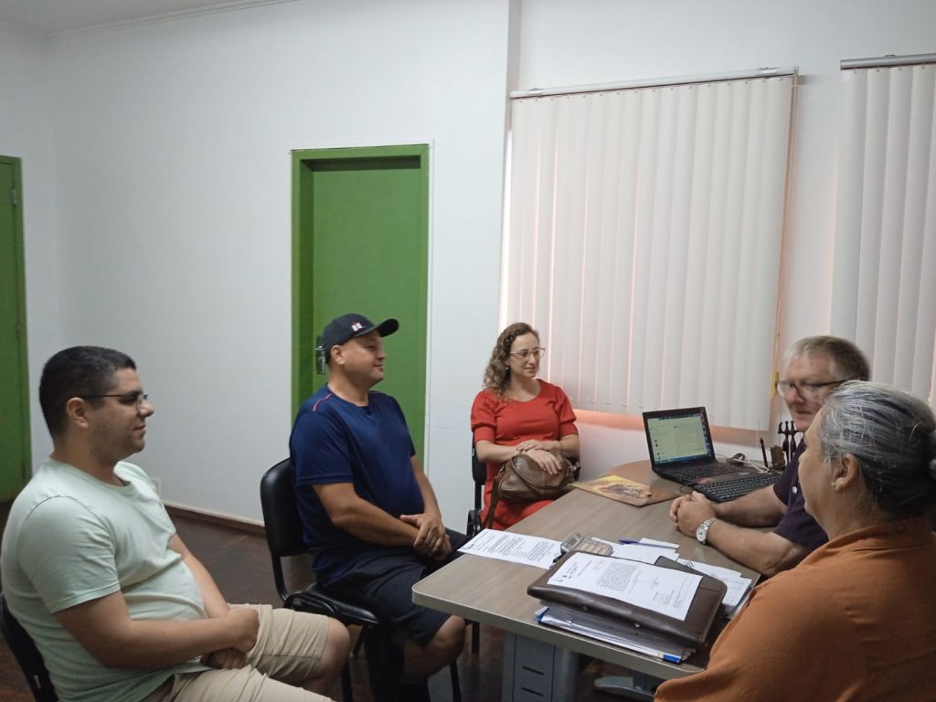 Nesta semana, Emeli Bernardi, responsável pela Supervisão Regional Ijuí da Secretaria da Agricultura Pecuária Produção Sustentável e Irrigação - SEAPI e Alexandre Kolankiewicz, Fiscal Estadual Agropecuário, ambos representando a Inspetoria Veterinária, com sede em Ijuí, participaram de uma reunião com o prefeito Paulo Dolovitsch, a vice-prefeita Vera Adoryan e o servidor Fábio Pinheiro, responsável pelo setor primário da Prefeitura Municipal (Blocos e Inspetoria Veterinária). A pauta principal do encontro foi a importância da regularização cadastral dos produtores rurais.