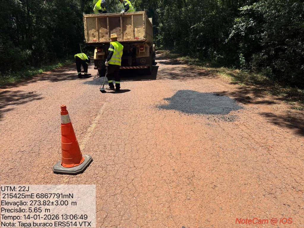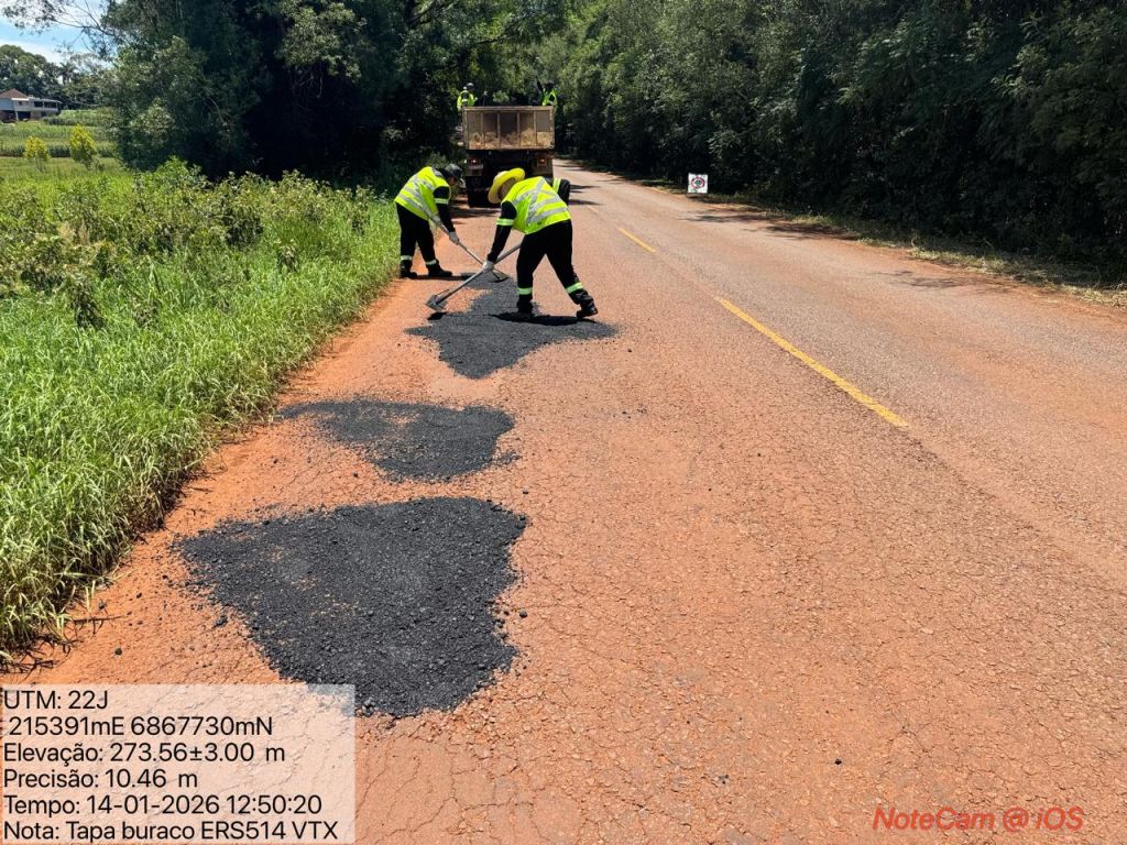DAER realiza operação tapa-buracos na ERS-514 após solicitações da Administração Municipal