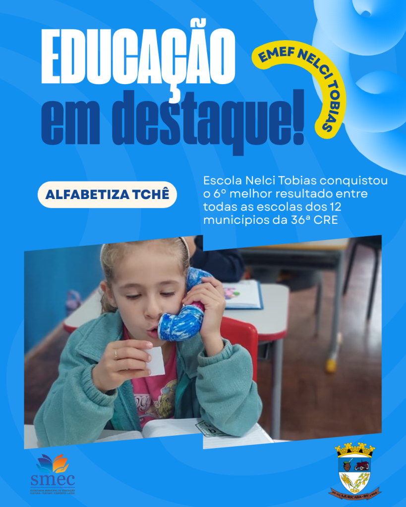 A Escola Municipal Professora Nelci Tobias Oedmann está entre as instituições de ensino contempladas pelo Prêmio Alfabetiza Tchê, conforme a Portaria SEDUC RS nº 0051/2026, publicada no Diário Oficial do Estado na terça-feira, dia 27.