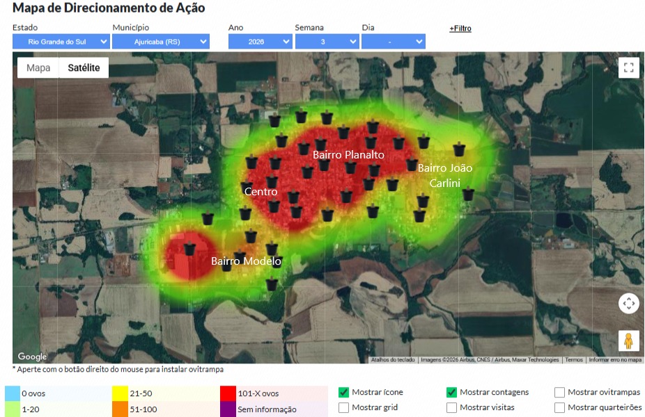 Das 42 ovitrampas instaladas no município no mês de janeiro, 20 positivaram, o que representa quase a metade do total.