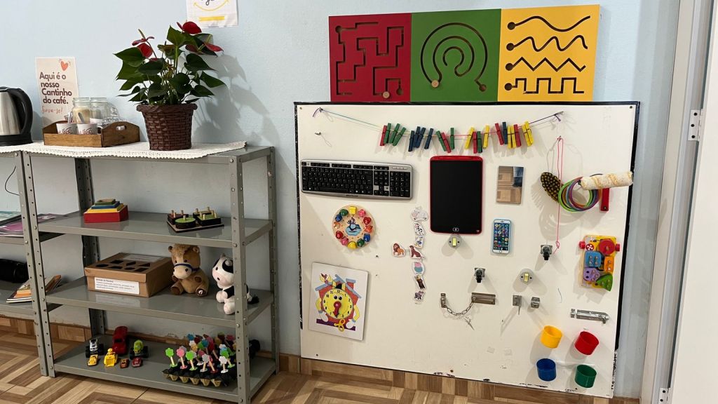 O espaço sensorial conta com recursos que auxiliam na autorregulação, promovendo estímulos adequados e contribuindo para o bem-estar e o desenvolvimento emocional das crianças. A proposta é garantir um ambiente que respeite os diferentes ritmos, necessidades e especificidades de cada estudante.