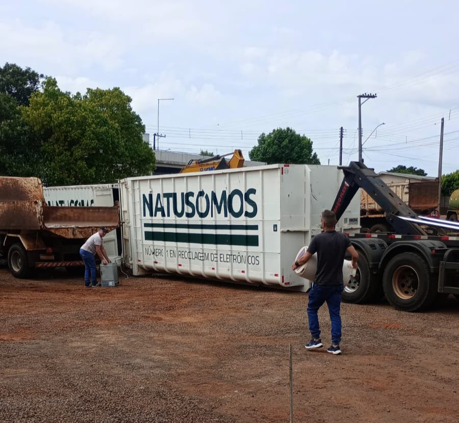 A empresa Natusomos realizou nesta semana o recolhimento do material eletrônico que estava armazenado no pátio da Secretaria Municipal de Obras.