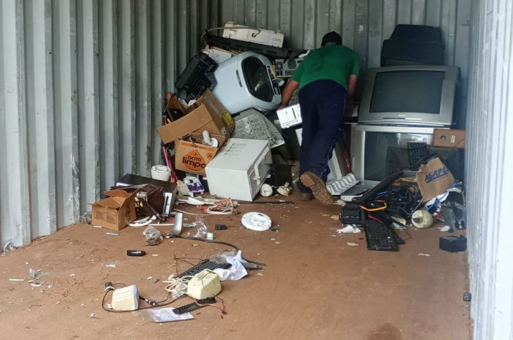A comunidade pode realizar o descarte de equipamentos que não possuem mais utilidade no container disponibilizado na secretaria de Obras